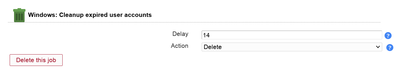 You can automatically delete or move expired accounts. The job checks Shadow account expiration dates (not password expiration dates).
