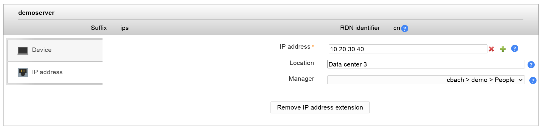 The device object class allows to manage general information about all sorts of devices (e.g. computers, network hardware, ...). You can enter the serial number, location and a describing text. It is also possible to specify the owner of the device.
