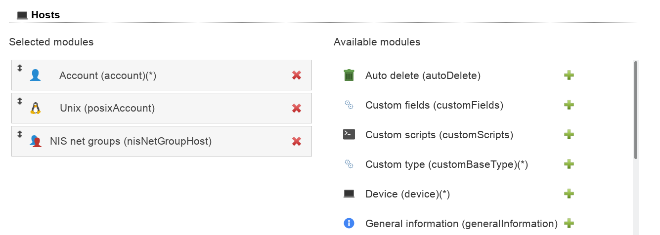 Please add the module "NIS net groups (nisNetGroupHost)" to the list of active host modules.