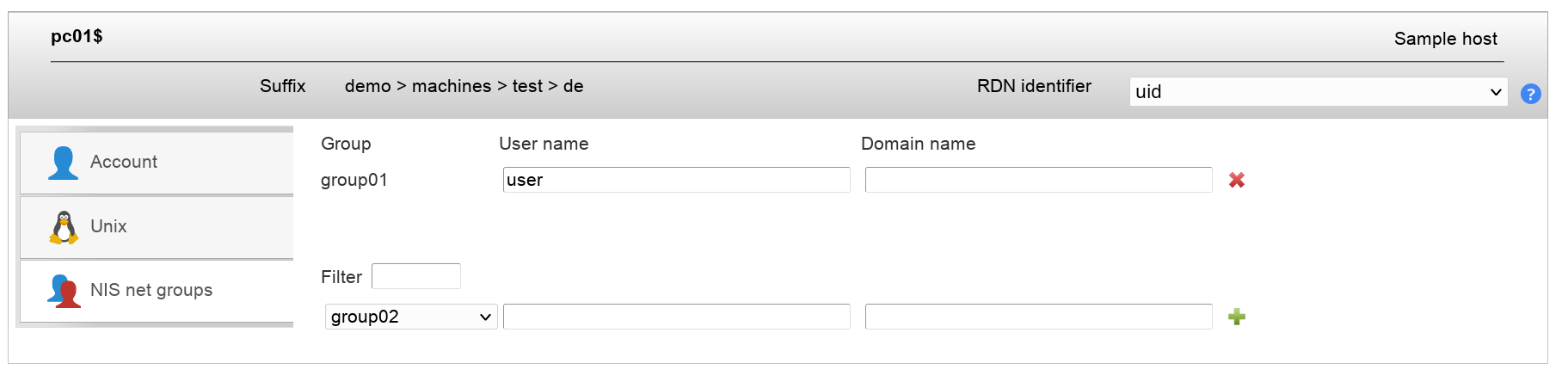 You will now see a new tab when editing hosts. Here you can assign memberships in NIS net groups and also set user/domain.