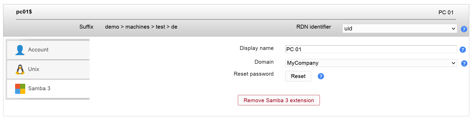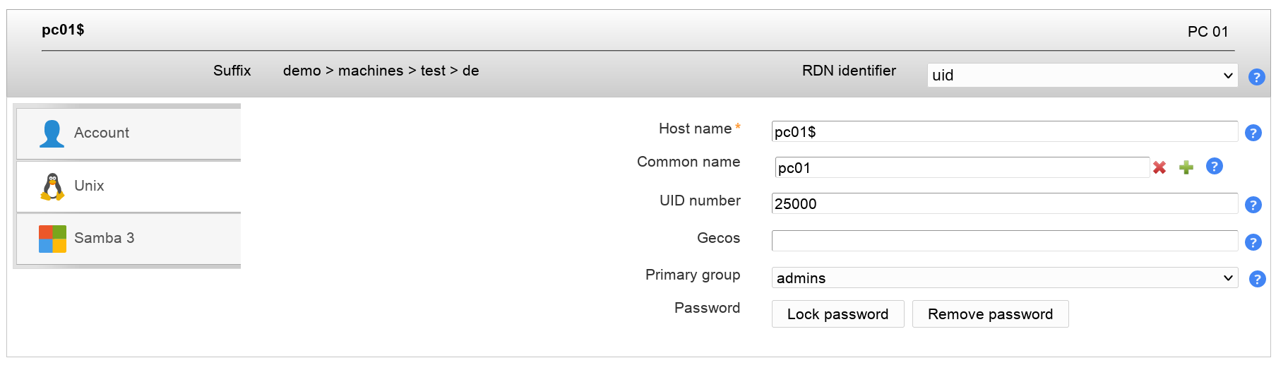 Now you will see you computer accounts inside LAM. You can set e.g. the server's description and location information.