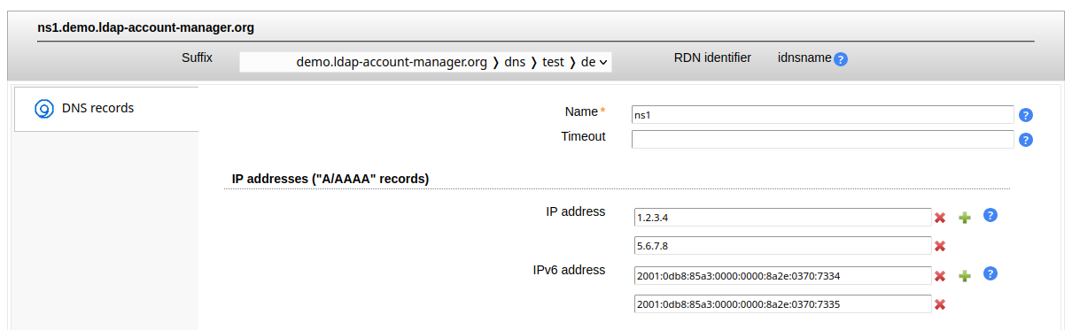 Here you can enter IPv4 (A) or IPv6 (AAAA) addresses for a DNS name.