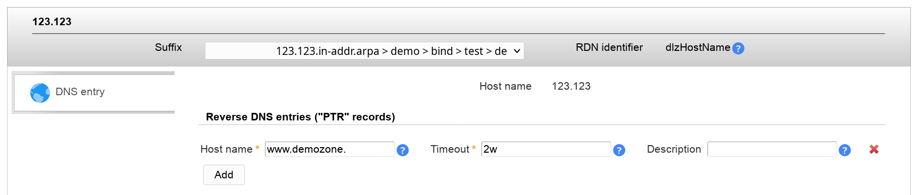 This will create the zone container entry and a default DNS entry "@" for authoritative information. Now switch the suffix to your new zone and start adding DNS entries.