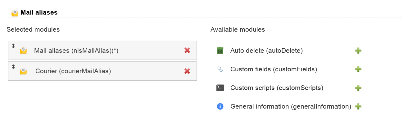 The mail aliases will then appear as separate tab inside LAM. You may then manage the aliases with their names and recipient addresses.