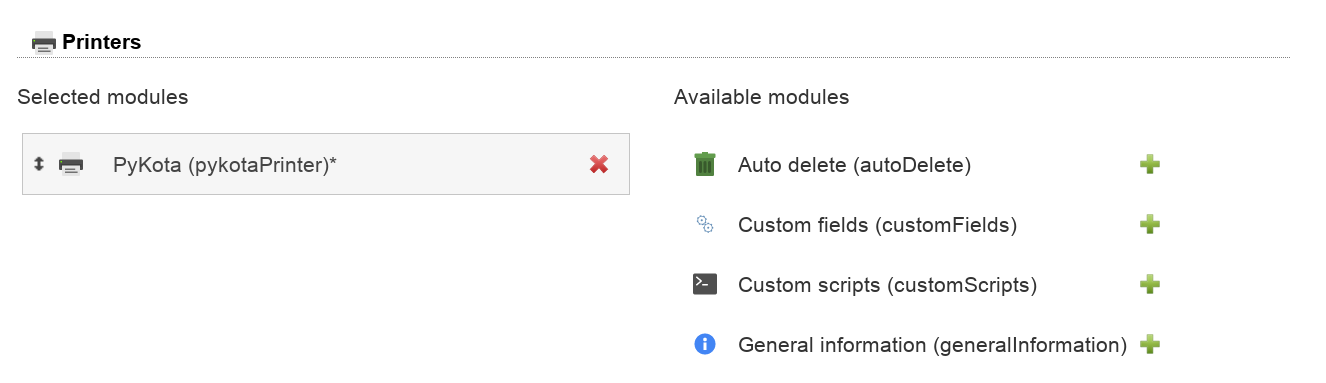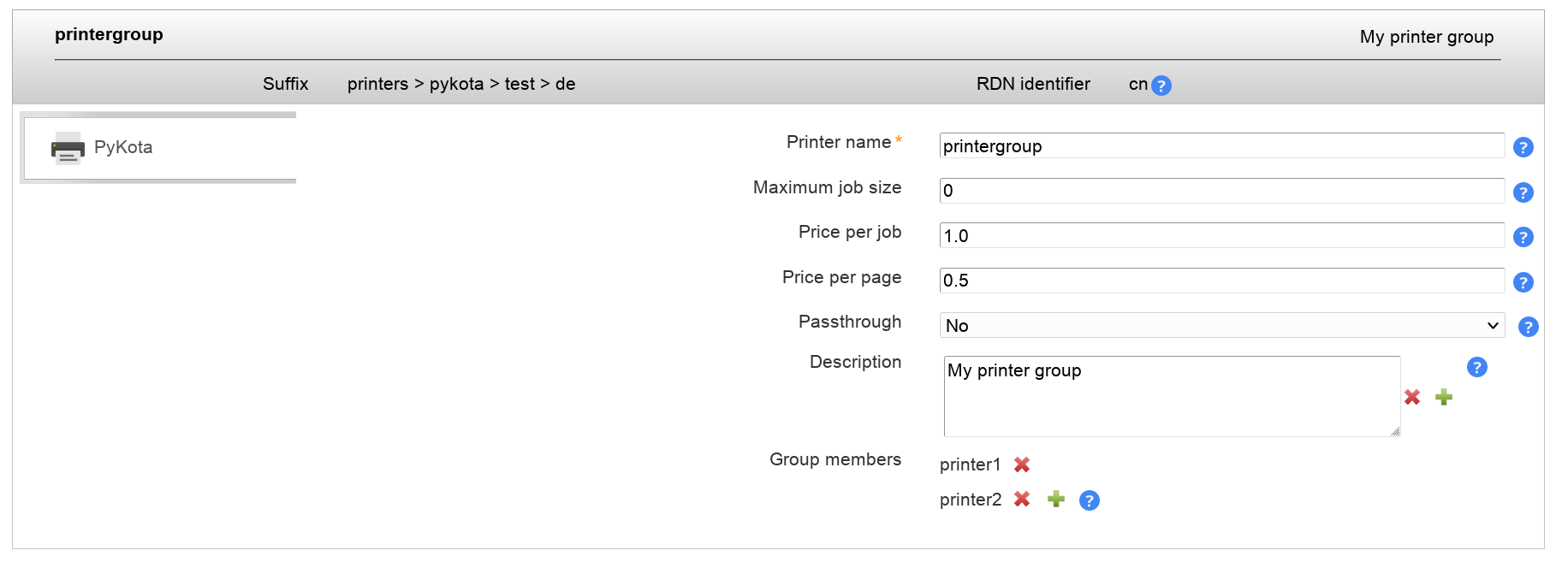 Please add the account type "Printers (PyKota printers)" on tab "Account types" in your server profile and setup the LDAP suffix where printers are stored.